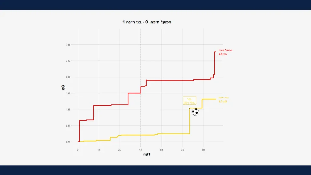 המשחק הזה מרתק מבחינה אנליטית. הפועל חיפה היו צריכים להבקיע שלושה שערים, ומתוכם ג'בון איסט, שקשה להסביר מה עבר עליו באותו המשחק, היה שווה *לבדו* 1.6 שערים. זה שקול להגיע 4 פעמים מול שוער ולהחמיץ את כולם, שזה כמעט בדיוק מה שקרה לאיסט באותו המשחק.