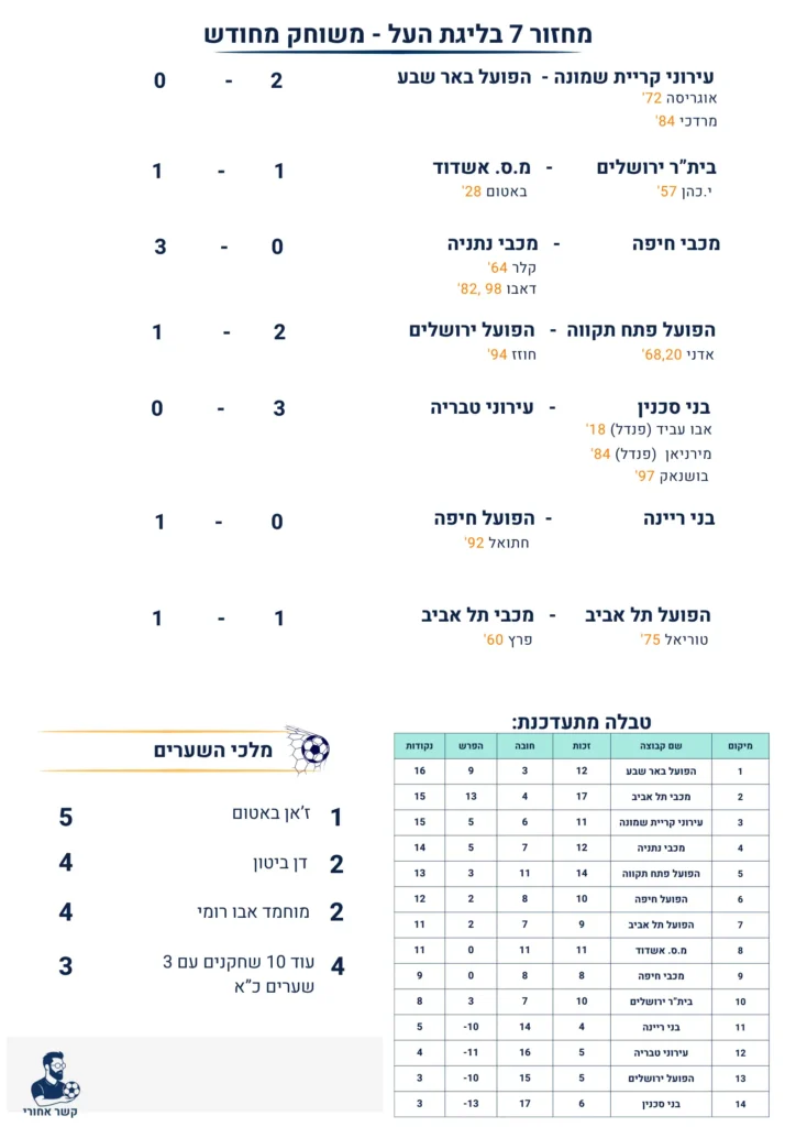עירוני קריית שמונה מפתיעה את הפועל באר שבע עם 0-2 ביתי. כן, באר שבע הייתה טובה יותר במשחק הזה, אבל שתי בעיטות קשות של אוגריסה ומרדכי עשו את ההבדל.